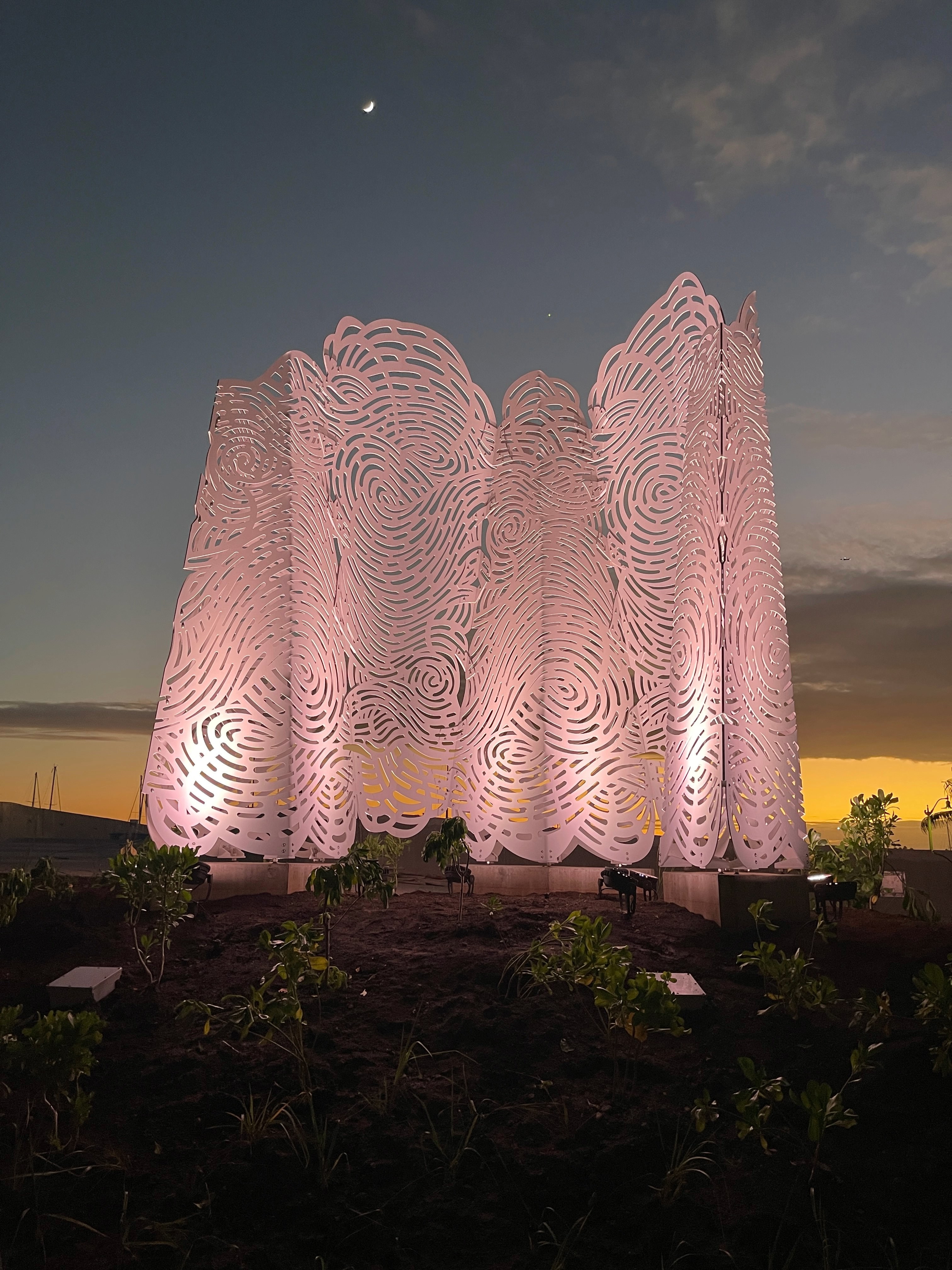 Wayfinding, 2024, laser-cut stainless steel, 20’ x 17’: