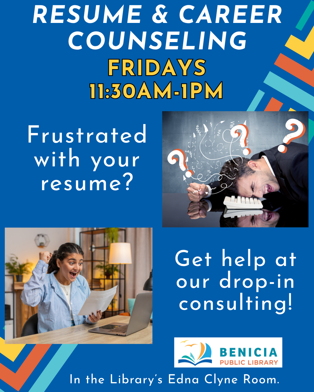 This is a drop-in class, no registration or appointment required! For more information, please contact Paula Landers: planders@ci.benicia.ca.us